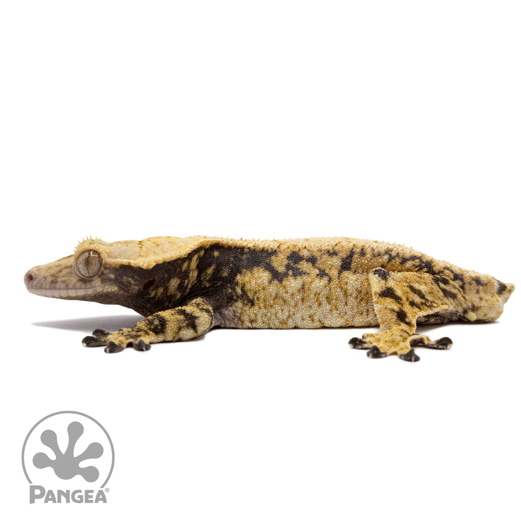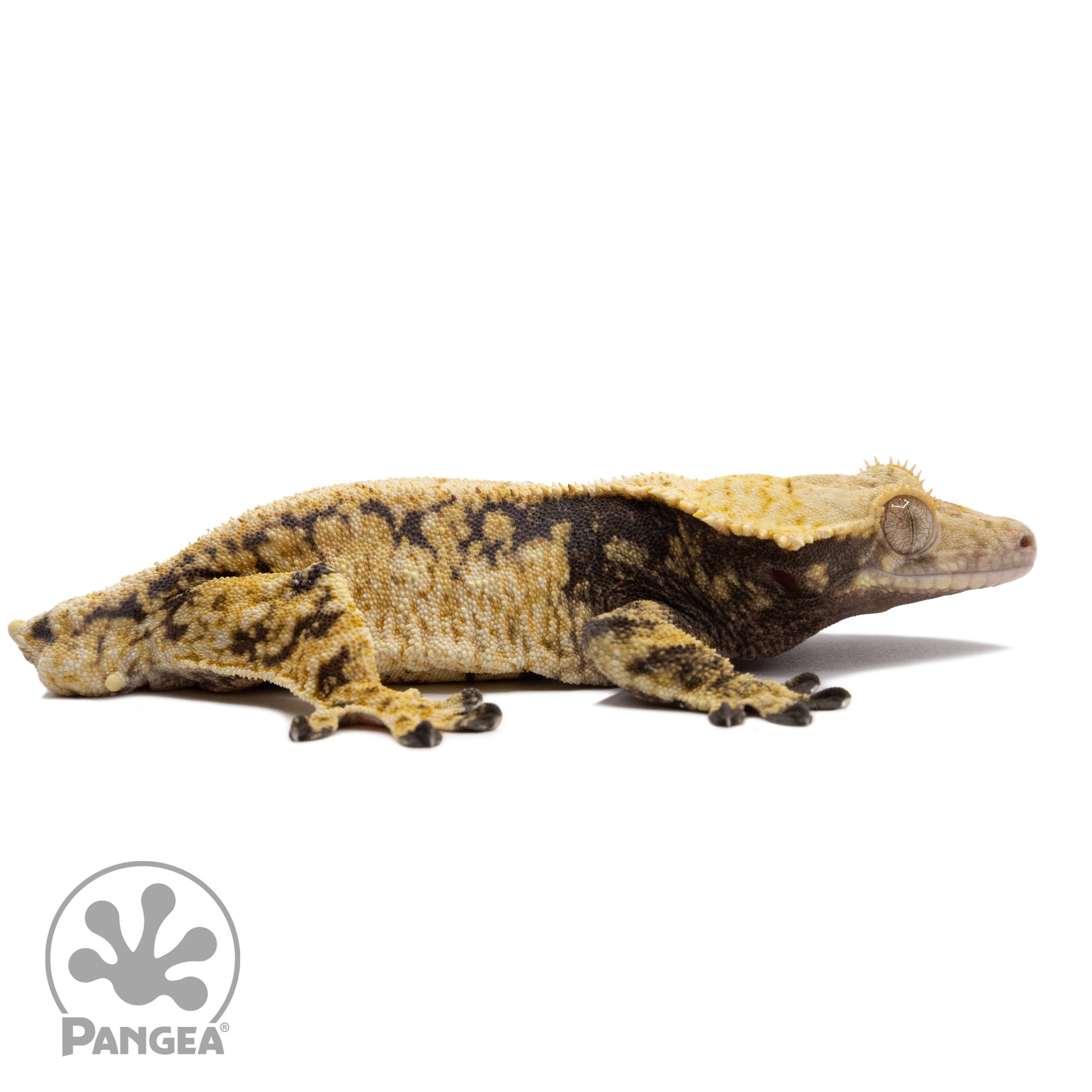 Looking for a flashy showstopper? Meet the Male Tricolor Extreme Harlequin Crested Gecko Cr-1482 featuring an extreme harlequin pattern of yellow and cream over a dark base - he's sure to turn heads! Ready to breed, get him before he's gone!