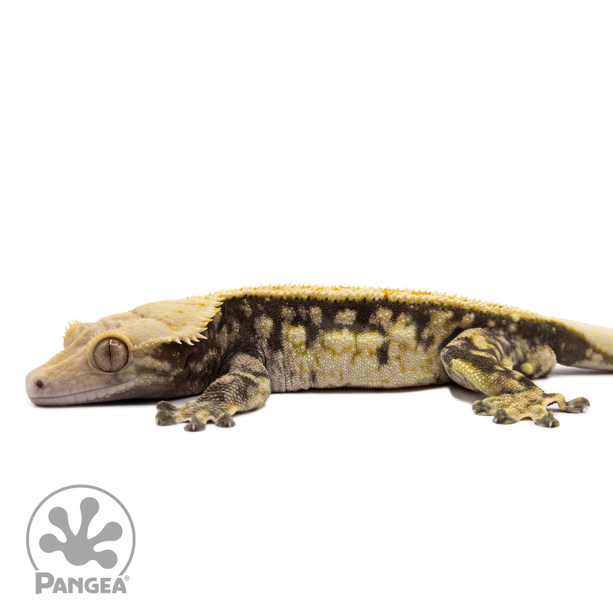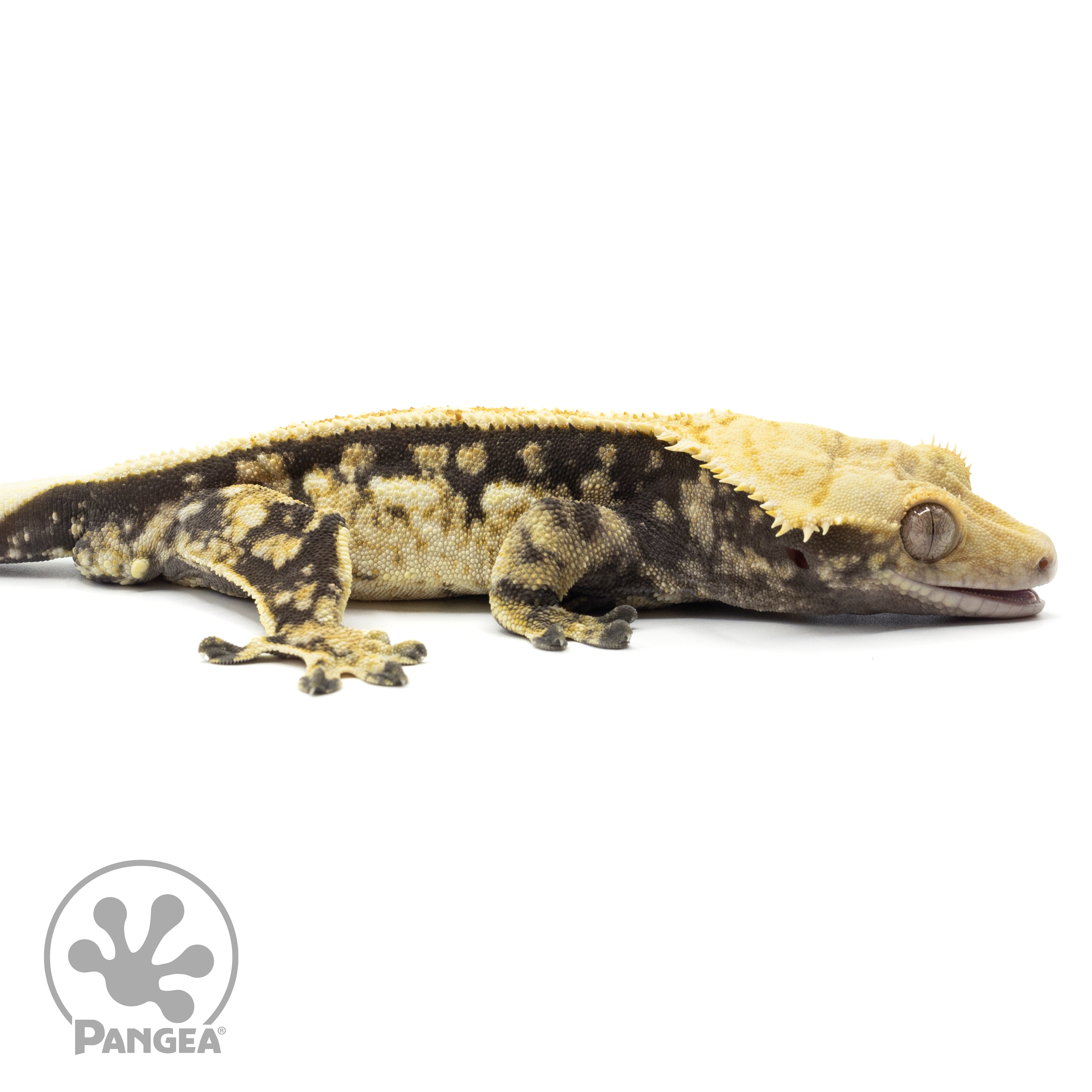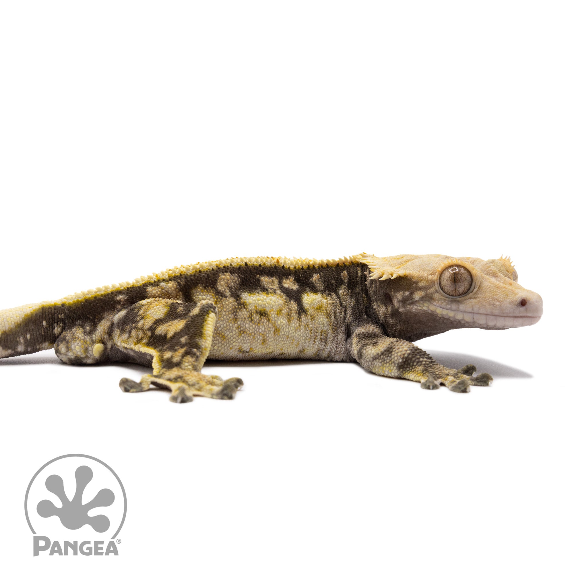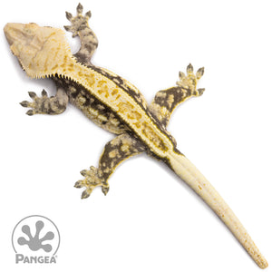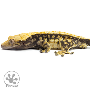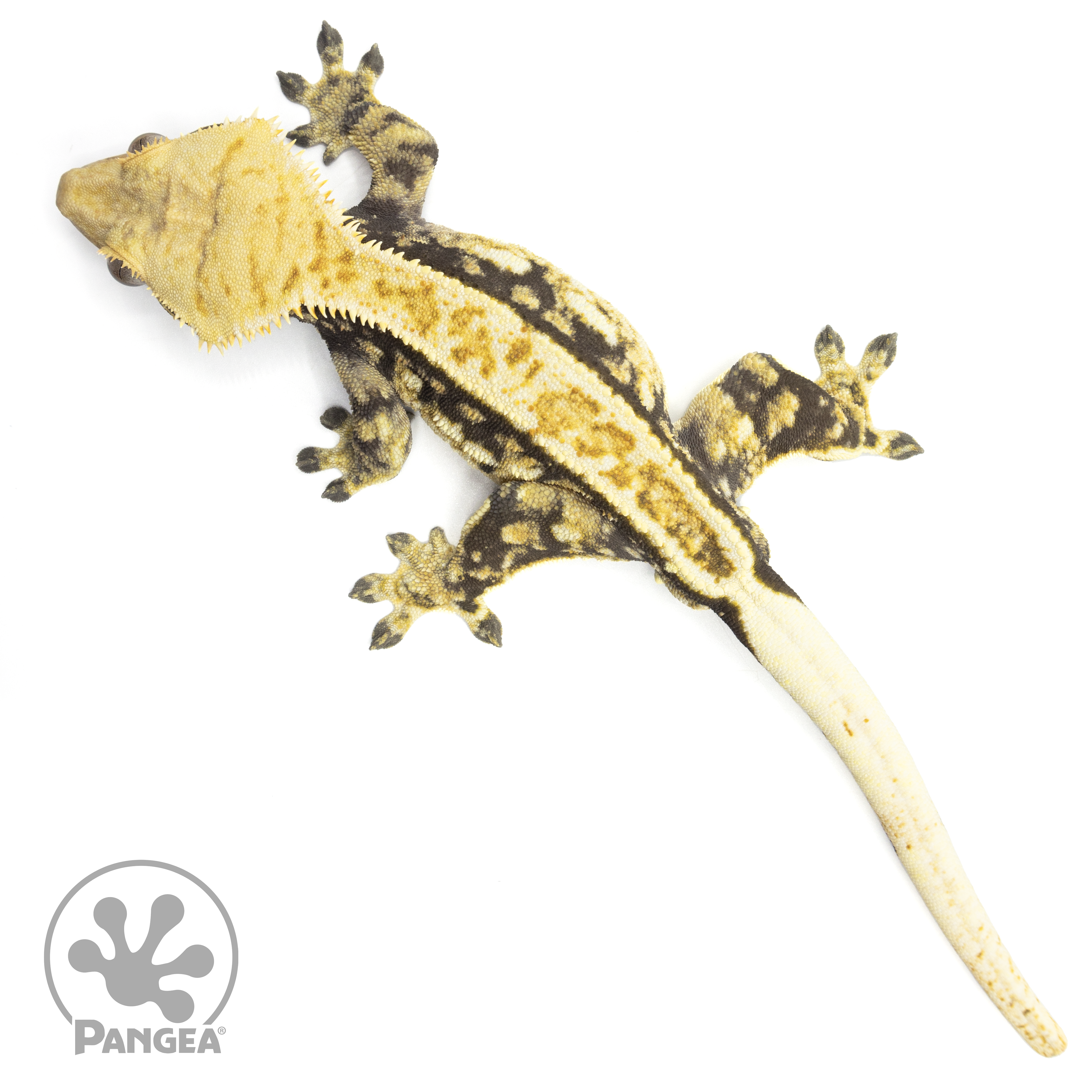 This Male Tricolor Crested Gecko Cr-1583 features a tricolor extreme pattern in yellow and cream set against a dark base. He also features full pinstriping down his dorsal and the ability to breed. Don't miss out on this stunning guy!