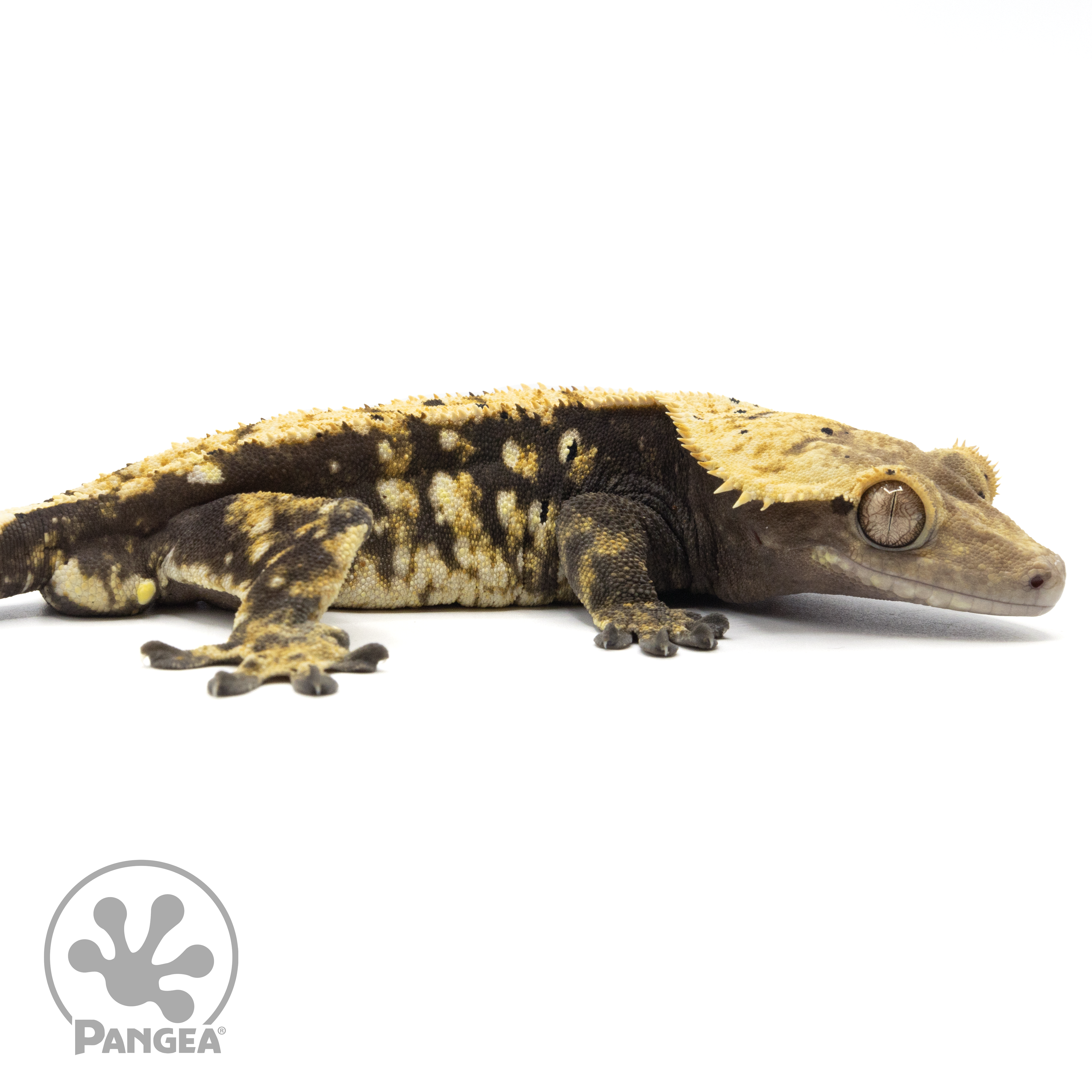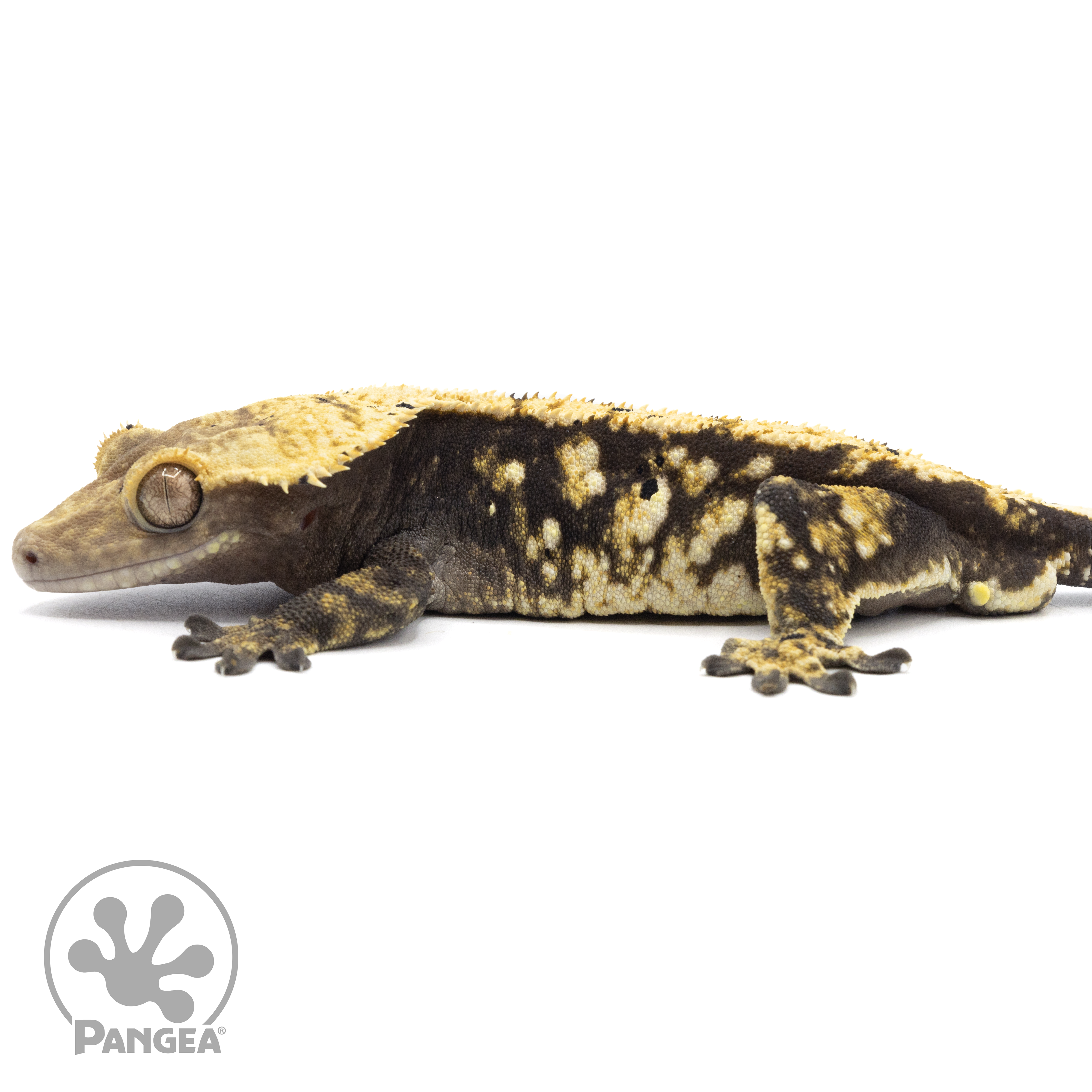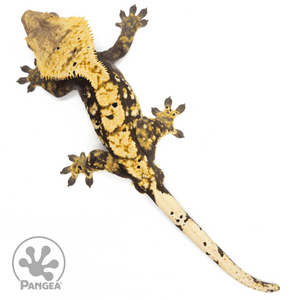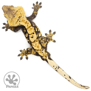 This Male Tricolor Harlequin Crested Gecko (Cr-1612) is a one-of-a-kind, featuring a tricolor harlequin pattern in yellow and cream set against a black base. With speckled dalmatian spots and the ability to breed, this guy is the perfect choice for breeders and gecko enthusiasts alike!