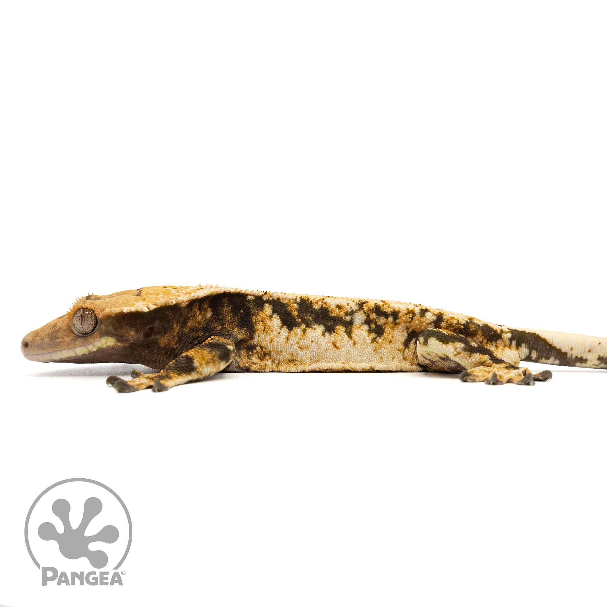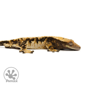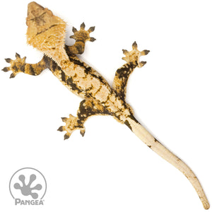 The Male Extreme Tricolor Crested Gecko Cr-1891 boasts a striking extreme harlequin pattern in vibrant yellow and white on a sleek black base. Plus, this gecko is ready to breed, making him a valuable addition to any breeding program.