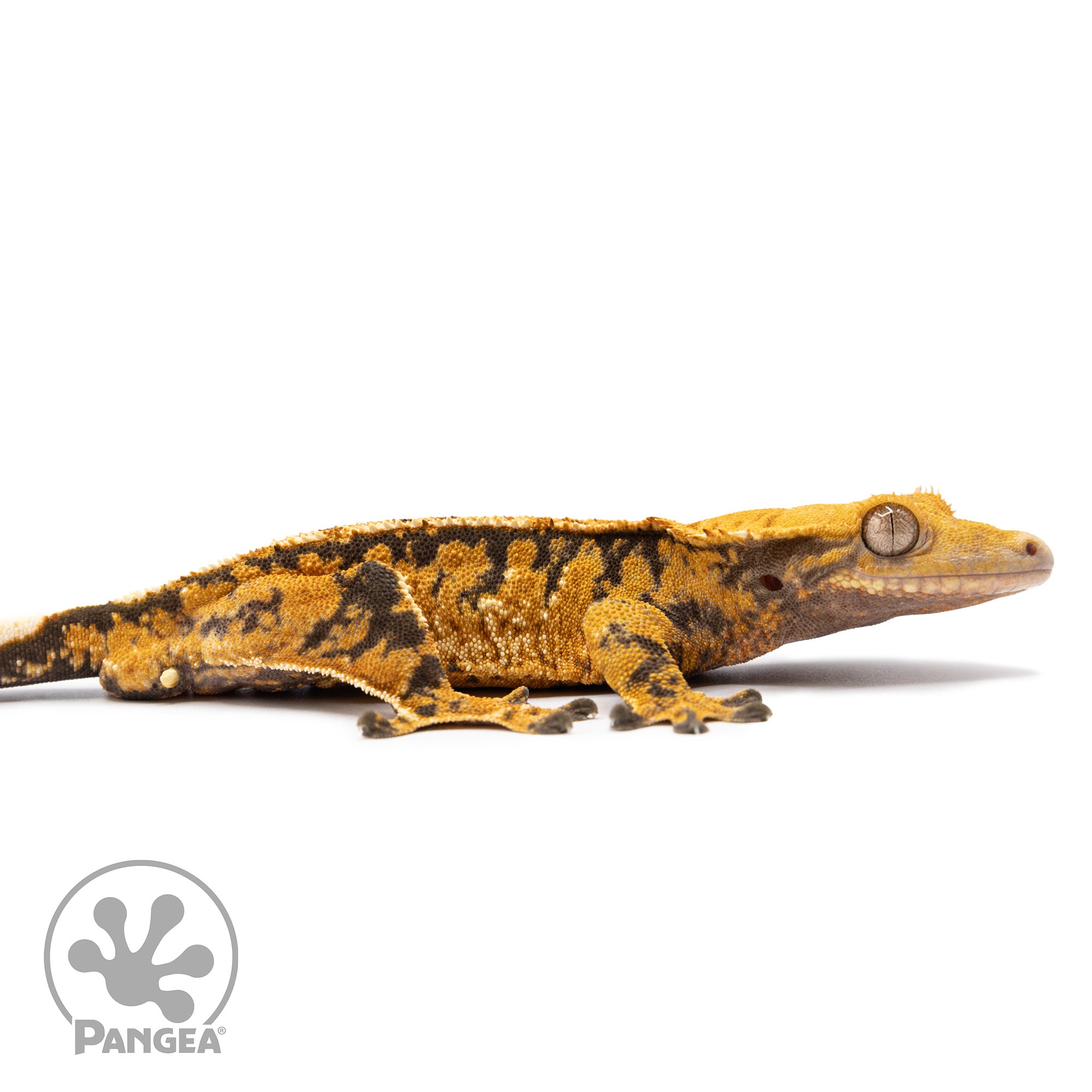 This Male Tricolor Extreme Crested Gecko boasts a unique Extreme Harlequin pattern with a stunning tricolor combination of cream, orange, and a dark base. Ready to breed, elevate your reptile collection with this standout creature today!