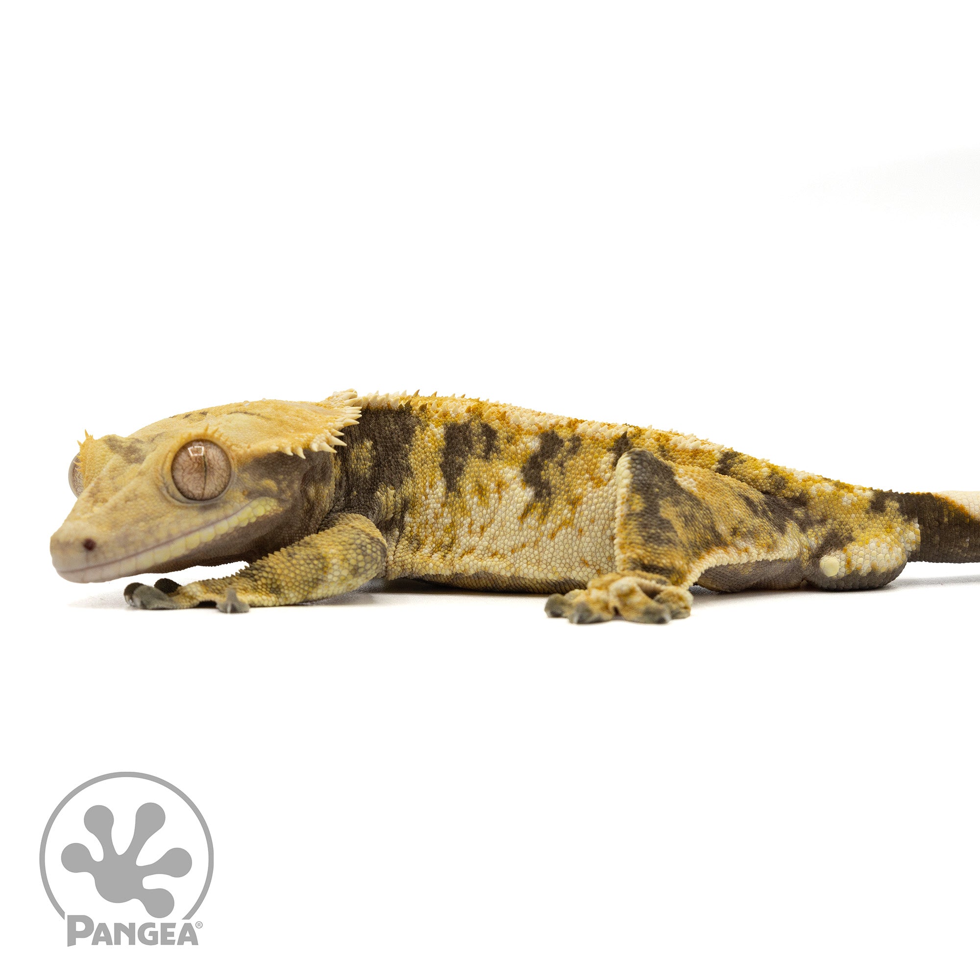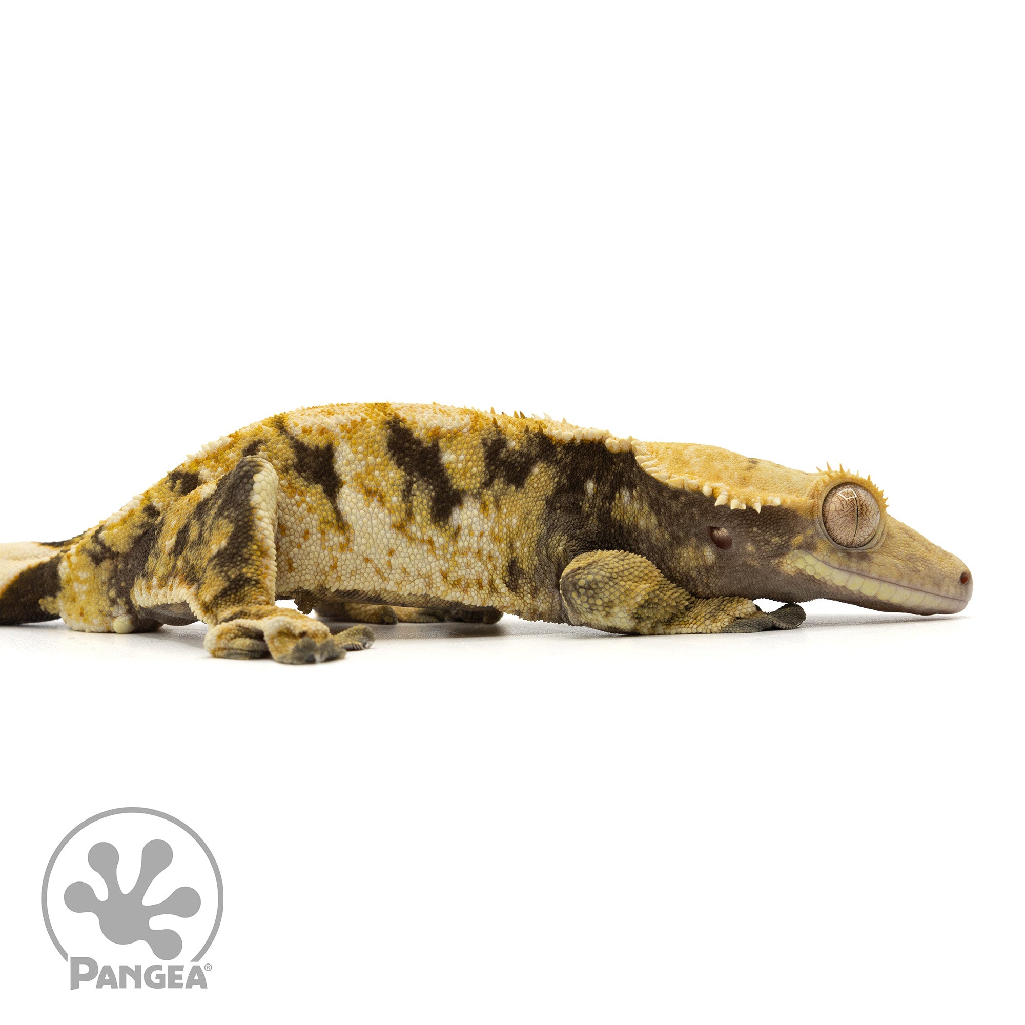 Introducing the Male Tricolor XXX Crested Gecko Cr-1888. This stunning gecko boasts a striking combination of yellow and white patterns on a dark base. He's ready to breed so don't miss your chance to add this impressive addition to your reptile collection.