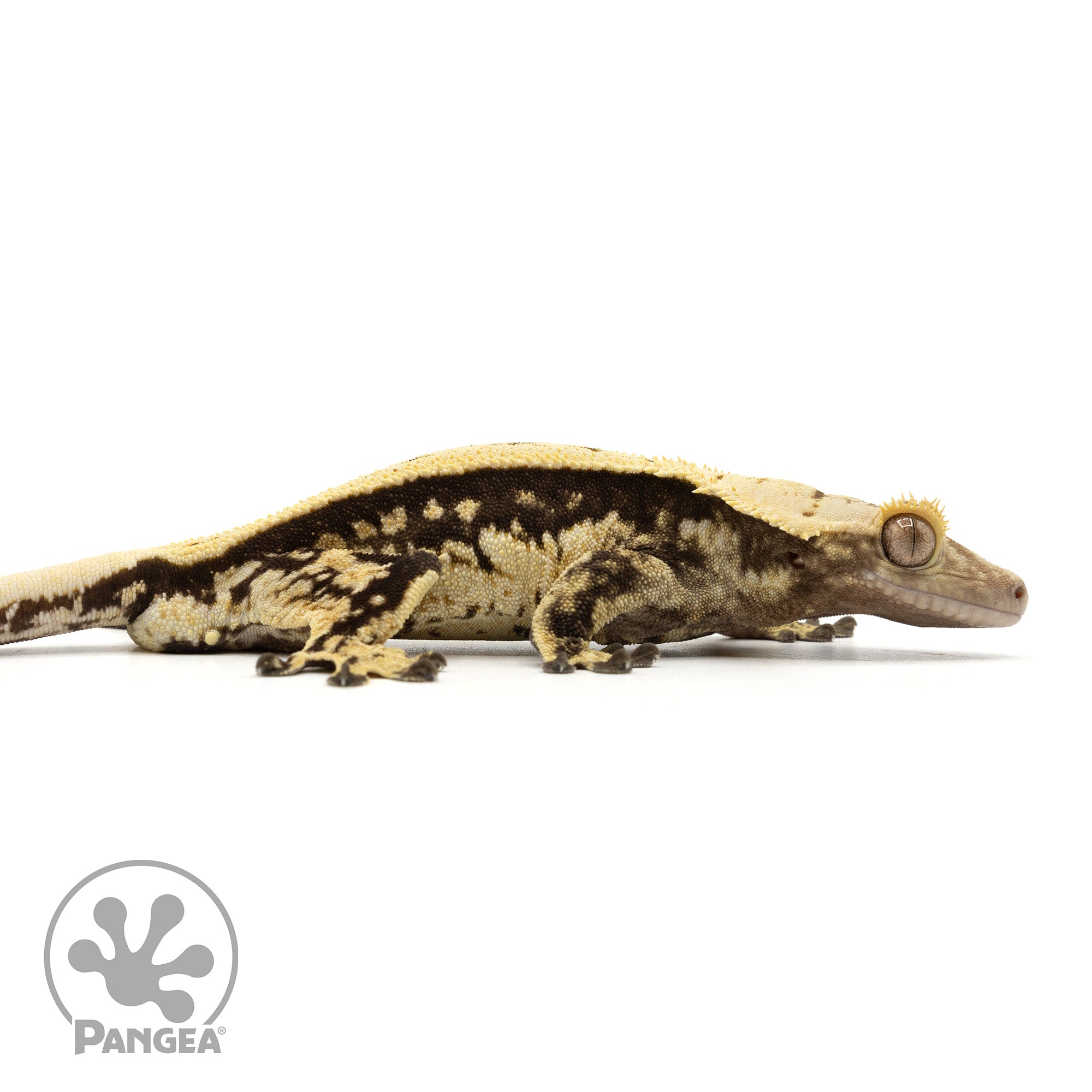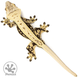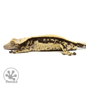 The Male White Wall Crested Gecko Cr-1884 boasts a striking pinstripe down his dorsal and a cream white wall pattern set upon a black base. He is ready to breed and will make a stunning addition to any collection.