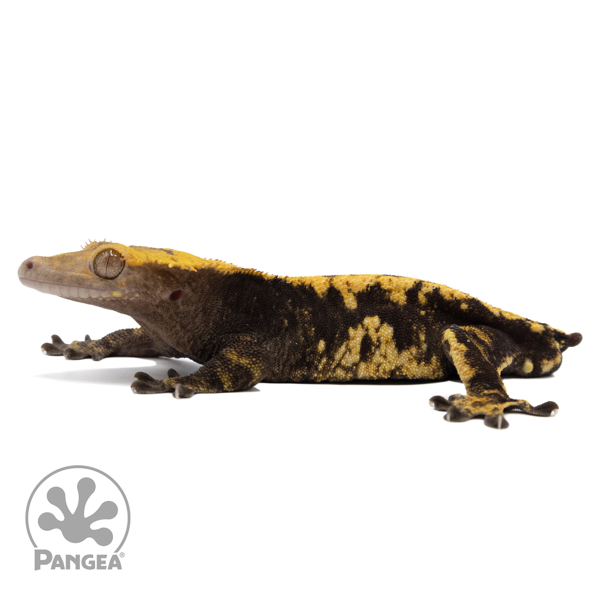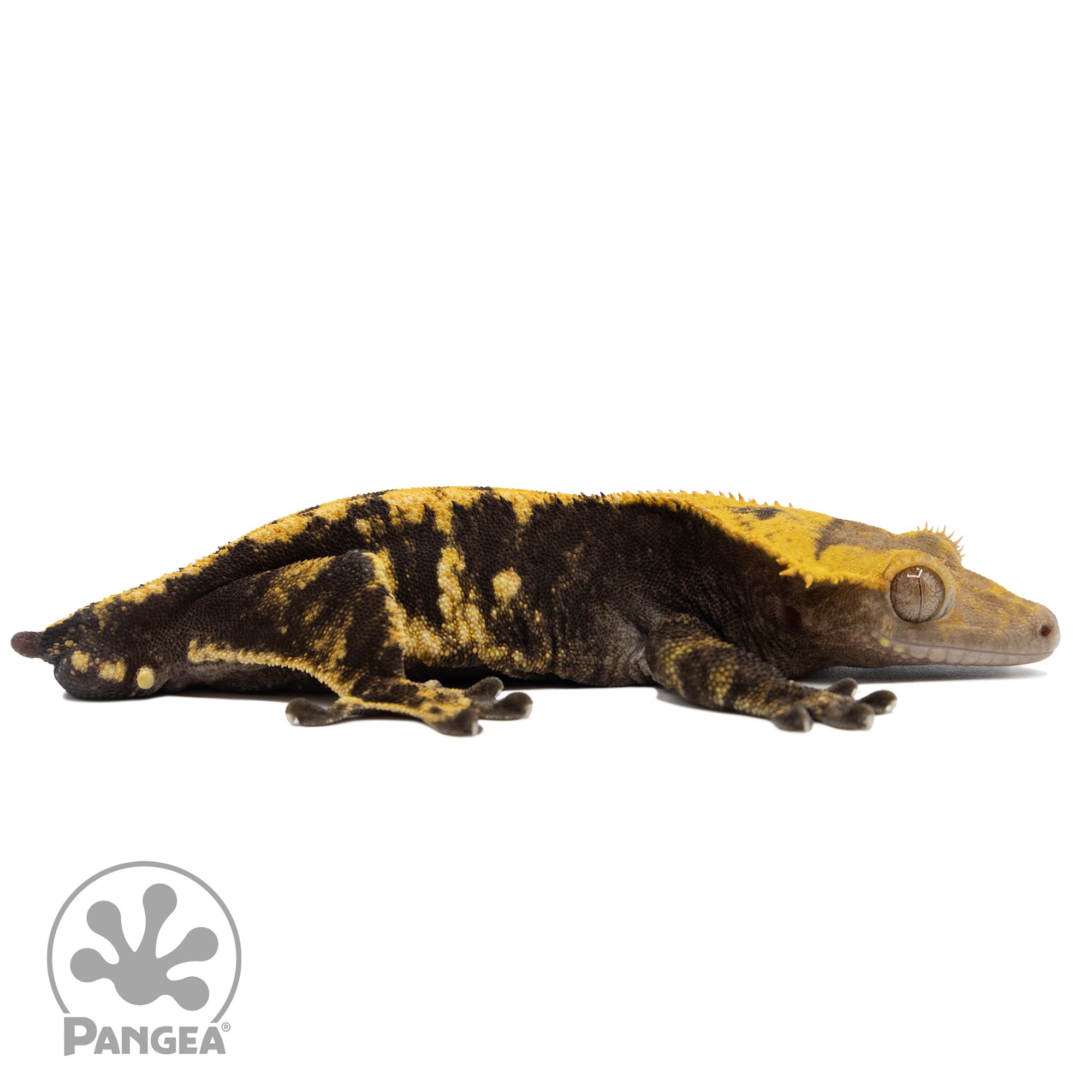 This male Harlequin Crested Gecko (CR-0765) has a stunning yellow pattern on a dark base, giving it a unique and eye-catching appearance. Ready to breed and become a valuable addition to any collection. A true gem for any reptile enthusiast.
