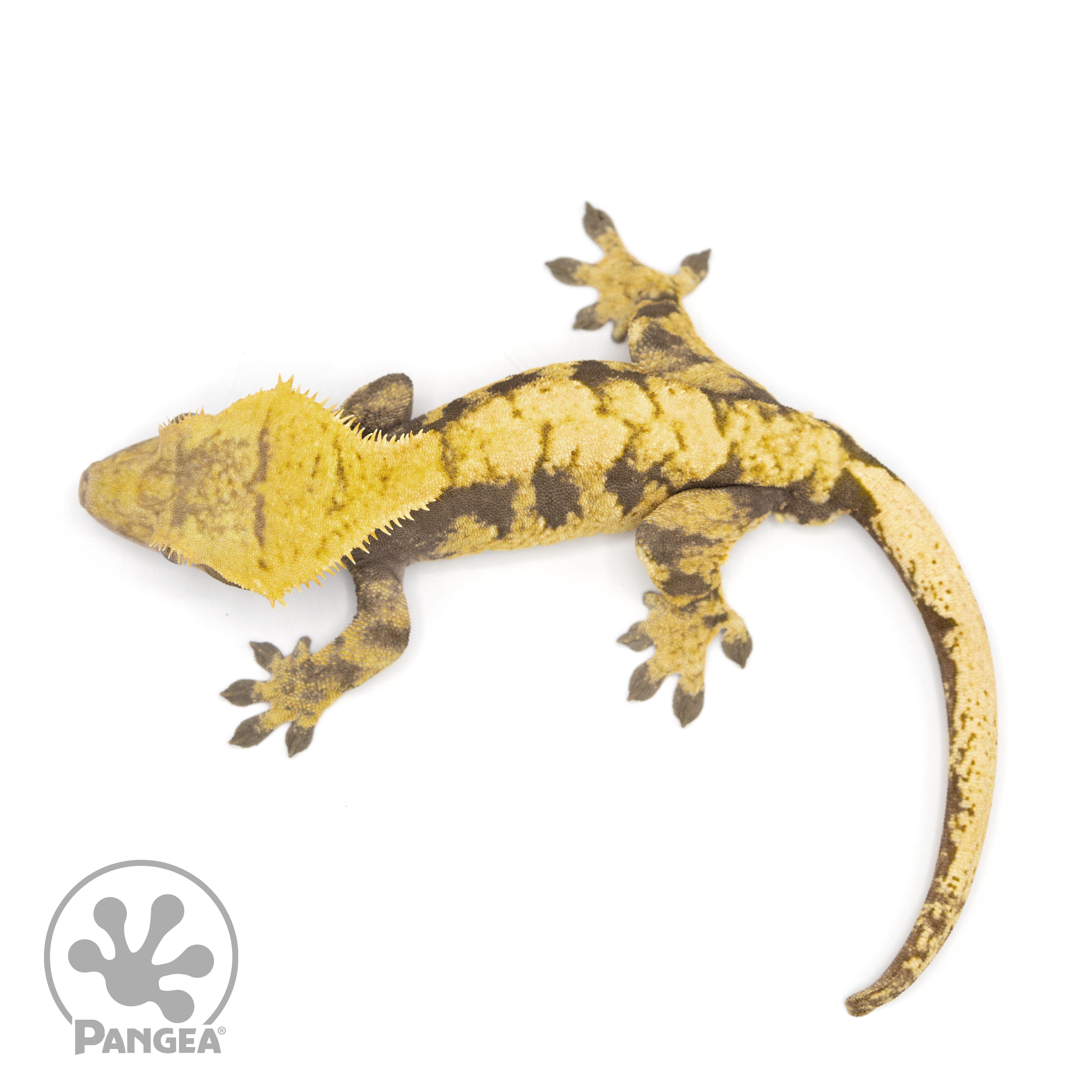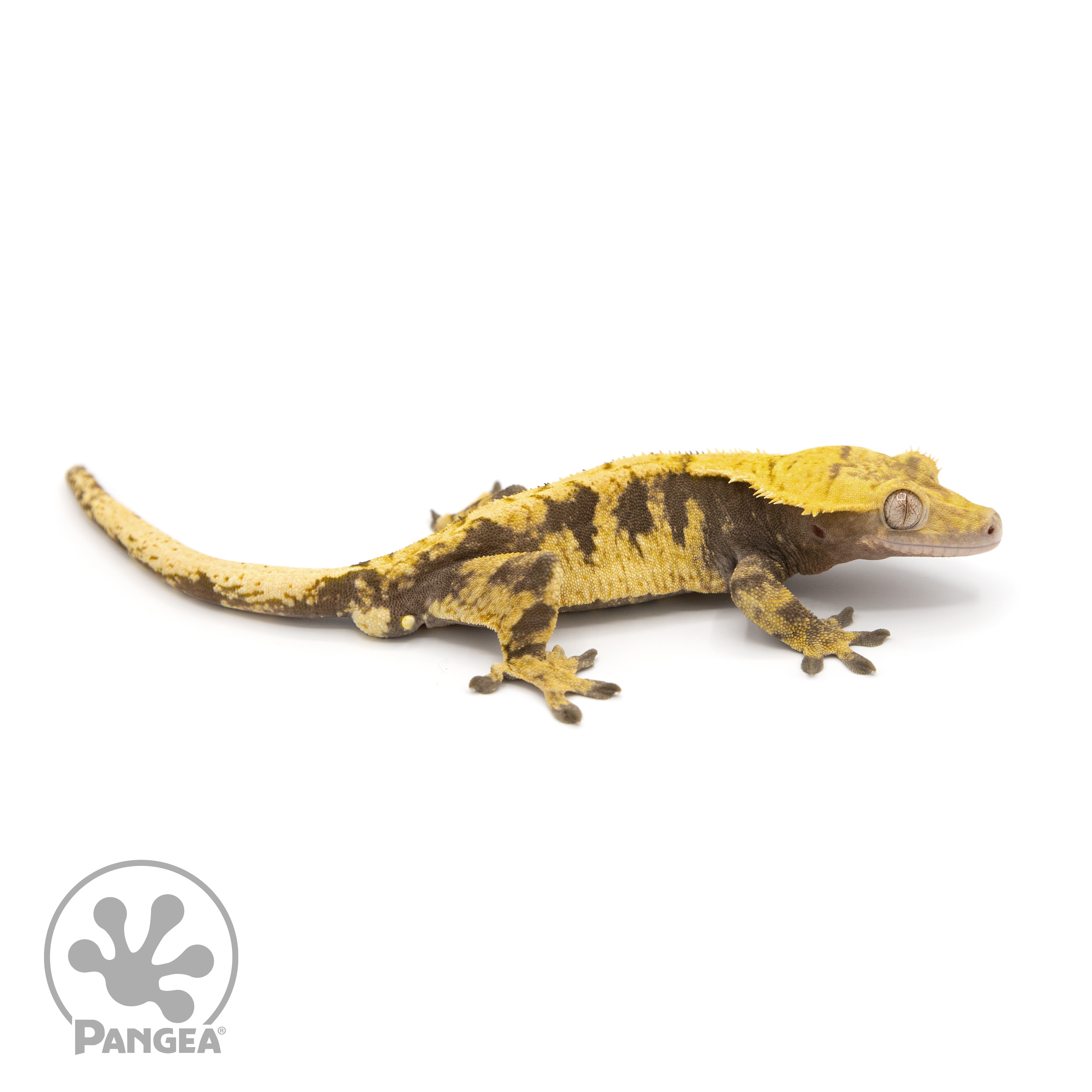 The Male XXX Crested Gecko Cr-1229 features an extreme XXX pattern in a striking yellow set upon a dark base. He is ready to breed and will make a stunning addition to any reptile collection!