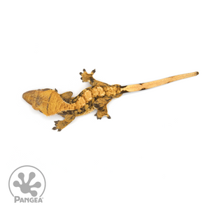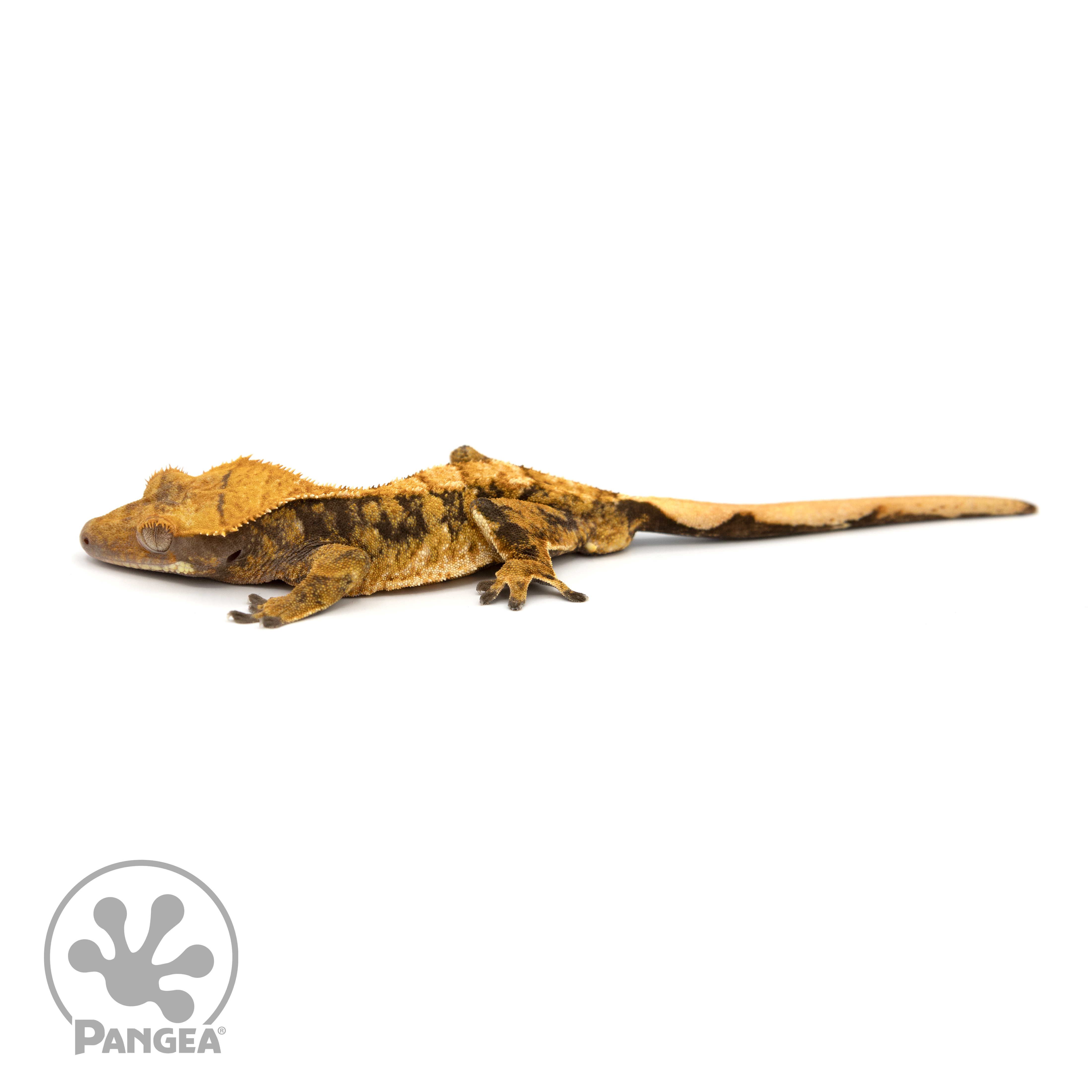 The Male XXX Tricolor Crested Gecko Cr-1236 boasts a stunning blend of yellow and cream patterns on its black base. With an impressive fringe and kneecaps, this gecko is not only visually striking, but also ready to breed. A must-have for any reptile enthusiast.
