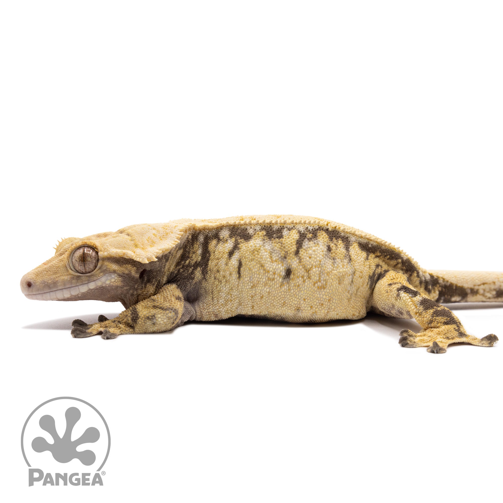 This incredible Female Extreme Harlequin Crested Gecko (Cr-1354) features a stunning yellow and cream pattern set upon a dark base, plus impressive snowflake markings. Ready to breed, she's sure to make an outstanding addition to any collection!