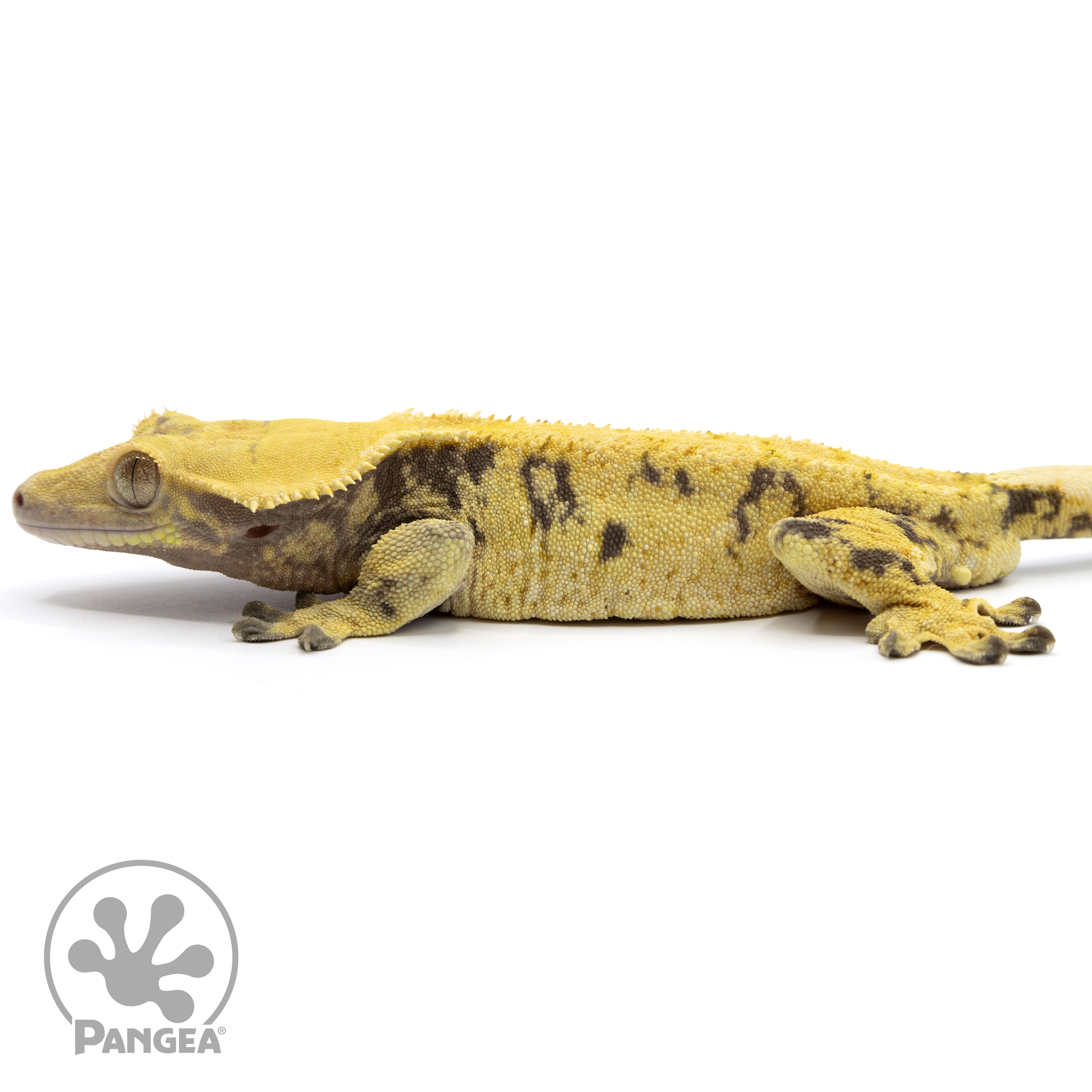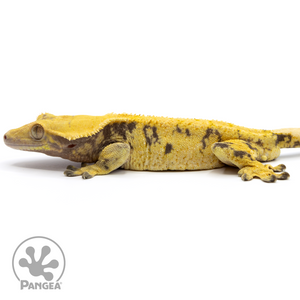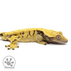 This stunning Male XXX Crested Gecko Cr-1803 features a beautiful yellow pattern on his black base. He's ready to breed, making him the perfect addition to any reptile collection.