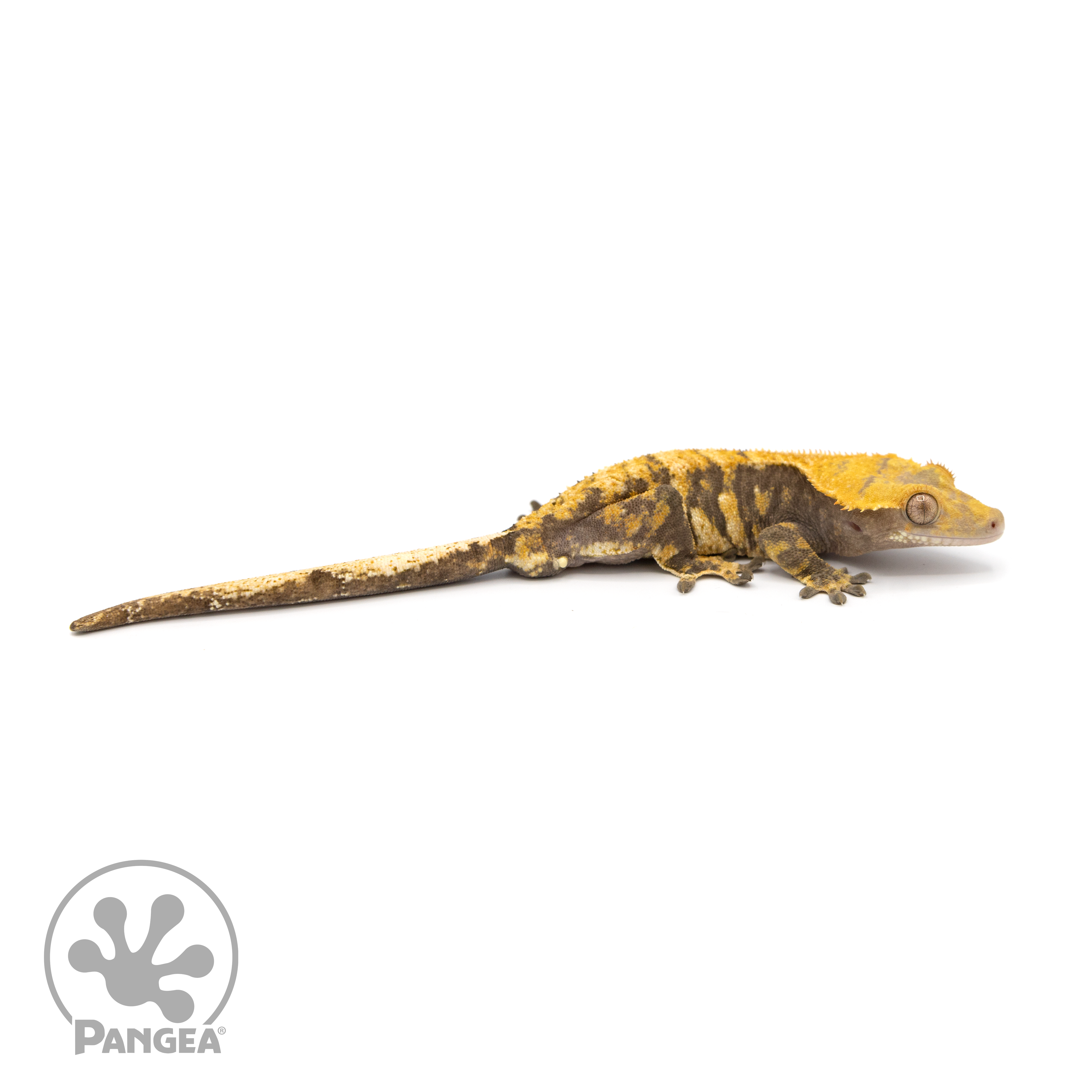 Discover the mesmerizing beauty of our Male Extreme Harlequin Crested Gecko Cr-1232. He features a stunning extreme pattern in orange and cream set upon a dark base. He's ready to breed making himself a striking addition to any collection. Don't miss out, get him today!