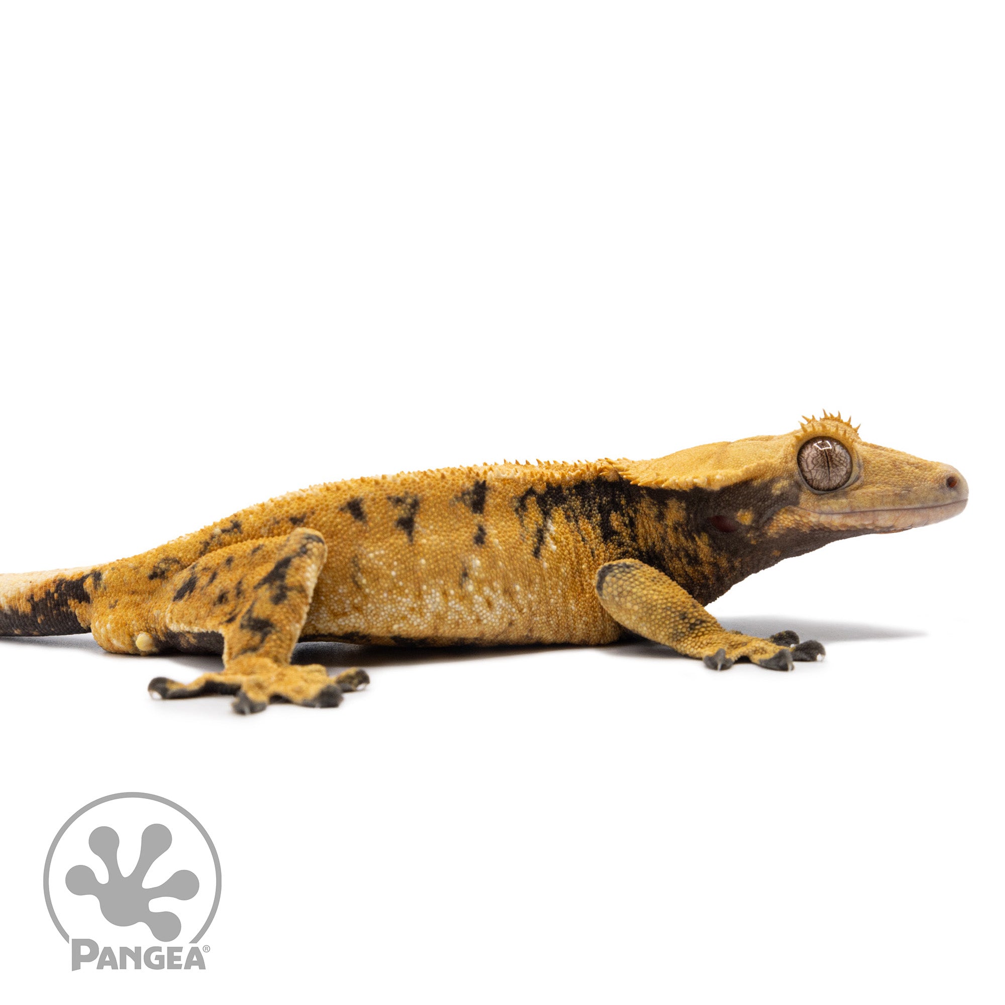 The Male Tricolor XXX Crested Gecko Cr-2715 boasts a high coverage extreme XXX pattern in bold tricolors of orange and cream on a dark base. His large crests and snowflake markings make him even more stunning. Plus, it's ready to breed! If your looking for some extremely high coverage then this is your guy!