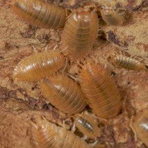 Porcellio scaber “Orange” is a vibrant, selectively bred morph of the common scaber, showcasing a pure orange coloration not found in wild populations. Their color can range from soft apricot to deep orange, with juveniles sometimes expressing lemon-yellow tones. Their hard bodies, adaptability, and prolific nature make them one of the most beginner-friendly morphs available.