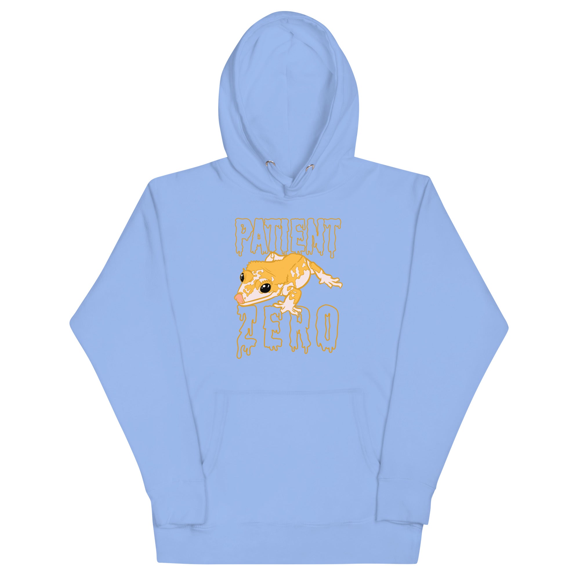 Finally Patient Zero on a Hoodie! Show off the world's most famous Crested Gecko with this PZ 'Drip' Hoodie.